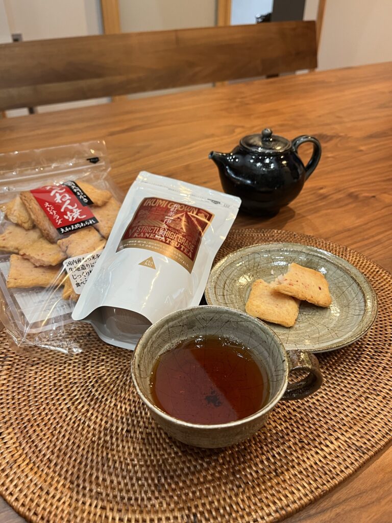 今日は、和紅茶とたんねん焼(エビサラダ味)お煎餅