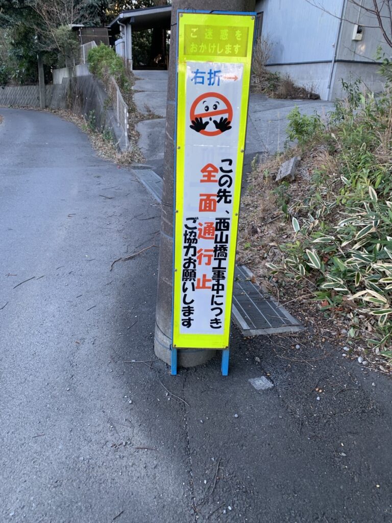 通行止めの標識だー。高速道路の橋の工事やってまーす。