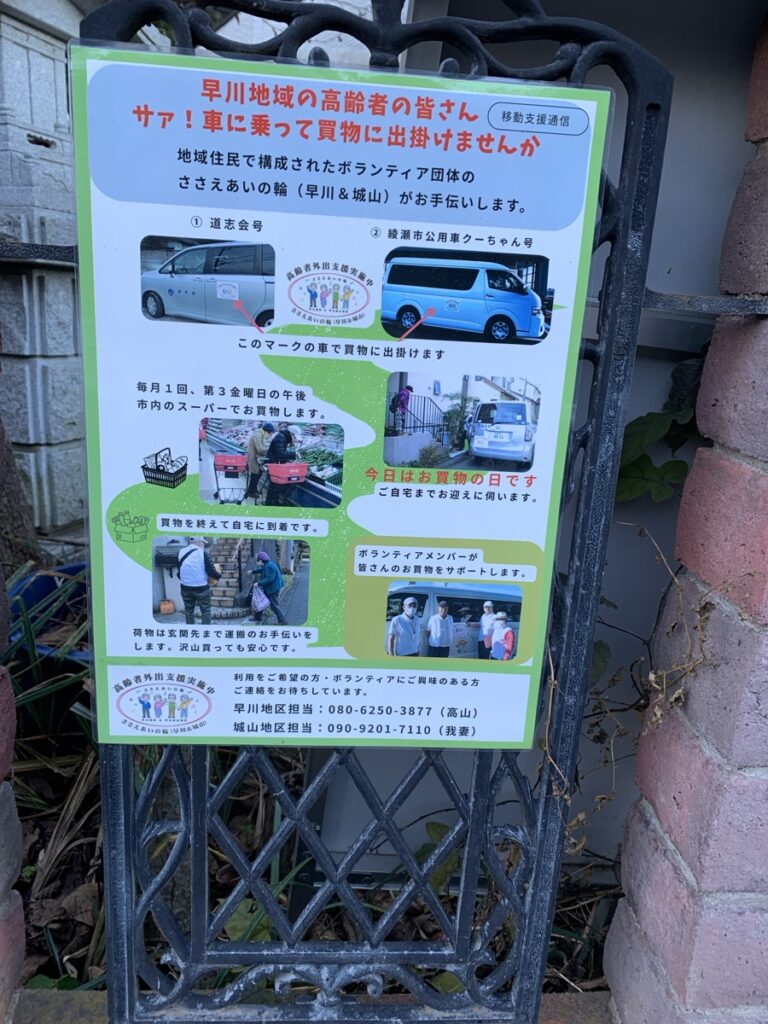 交通の便があまり良くない早川地区、お買い物サポート隊だよー
