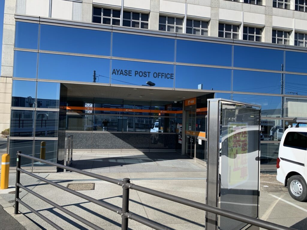 綾瀬の郵便局です。出来た時には近場で一番大きな郵便局でとての賑わっていたけど、今でも賑わっているか!な。最近では海老名市にもっと大きな郵便が出来て負けたかな?