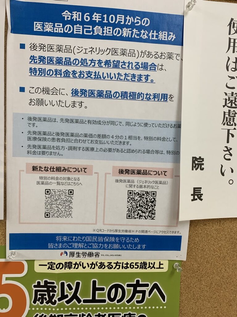 先日病名で先発と後発の医薬品の事が掲示されていました。後発が有るのに先発を求めたら特別料金がかかるそうですよ。初めて知りましたよ。