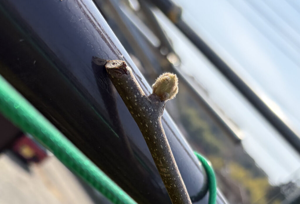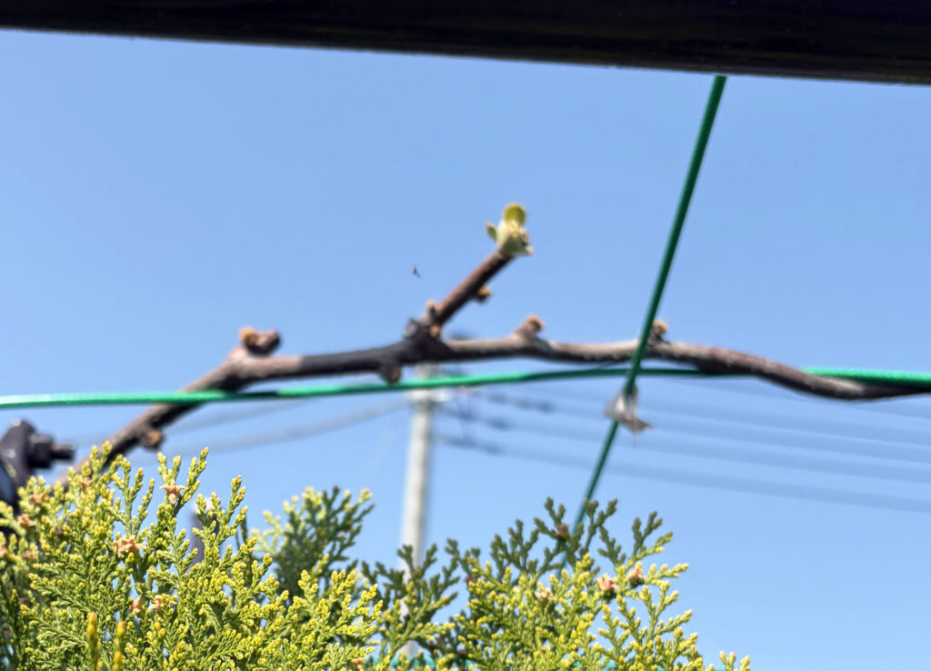 春ですね。芽が出てきました。今年は少し実がつくかな?植えて3年目です。