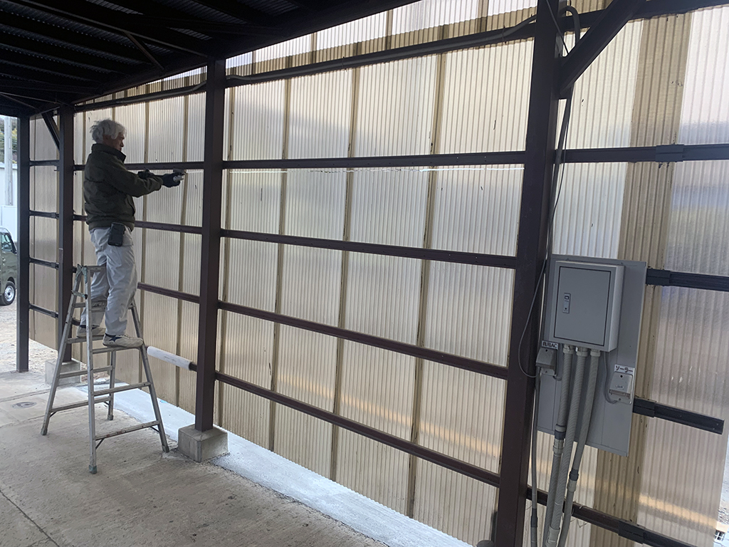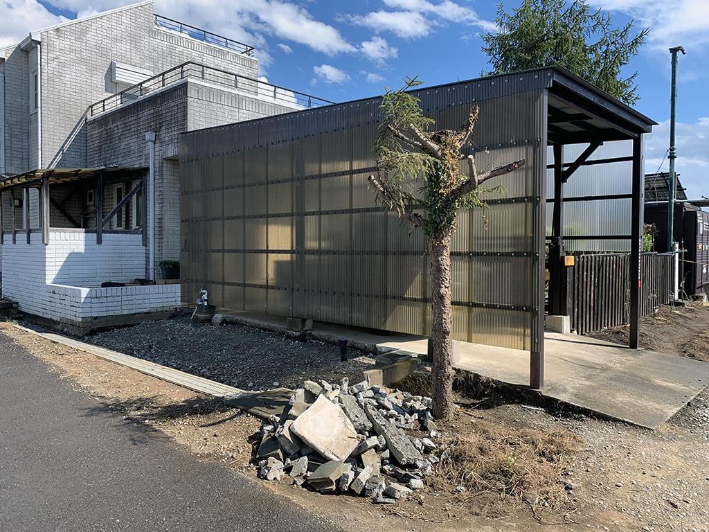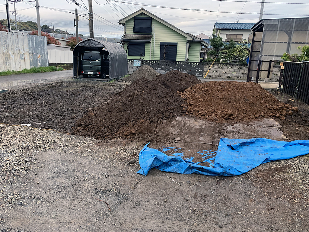 畑の土を少しずつ入れてもらっています。まだまだ少ないですが少しずつ畑になっていくと思います。残りの駐車場部分の砕石もミニユンボで少しずつ撤去しています。幌車庫はまだそのままです。