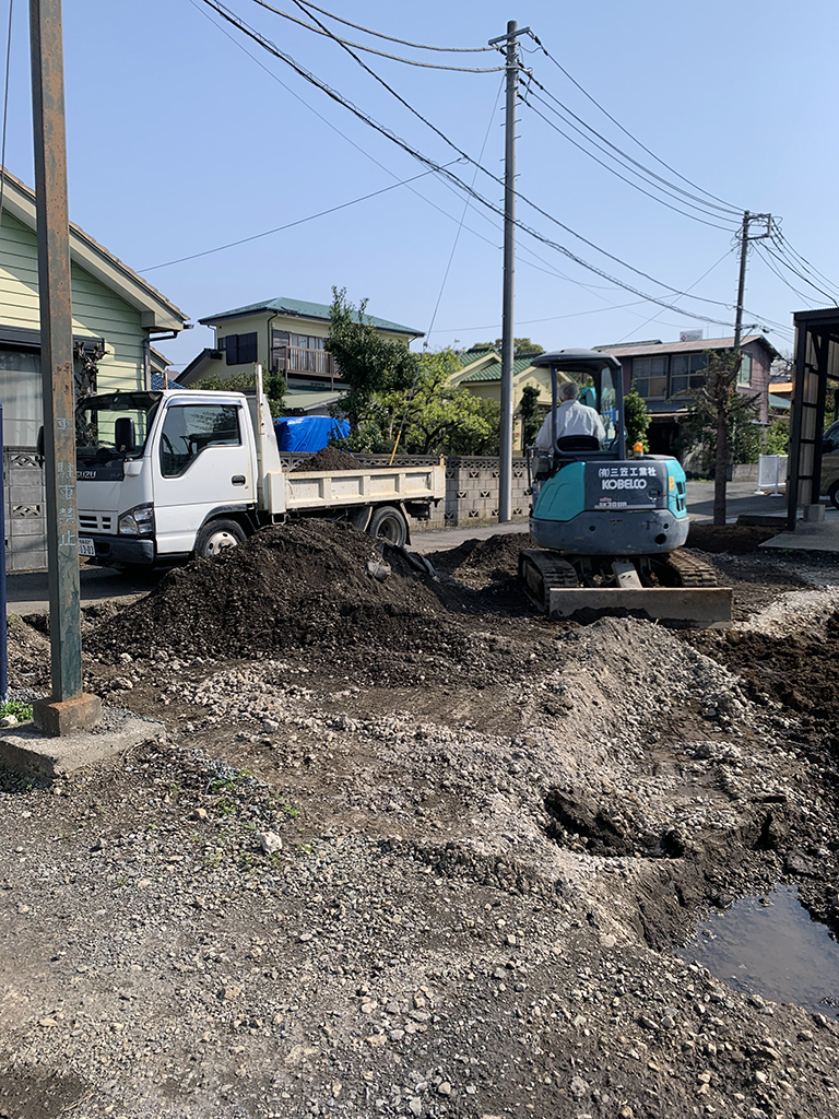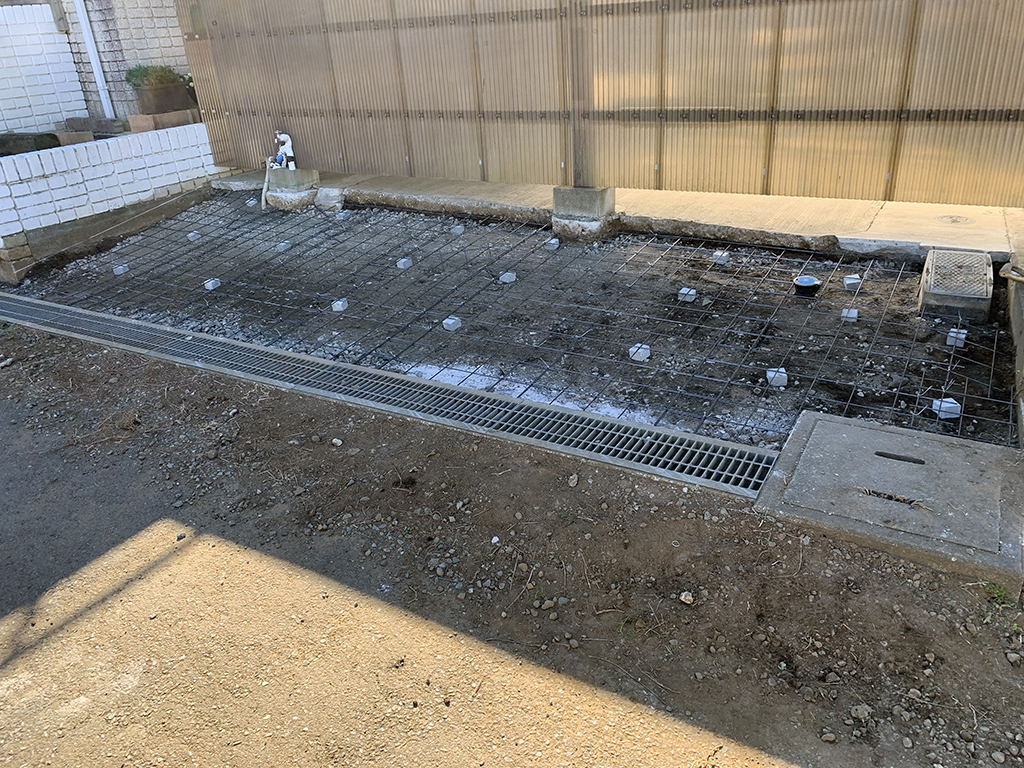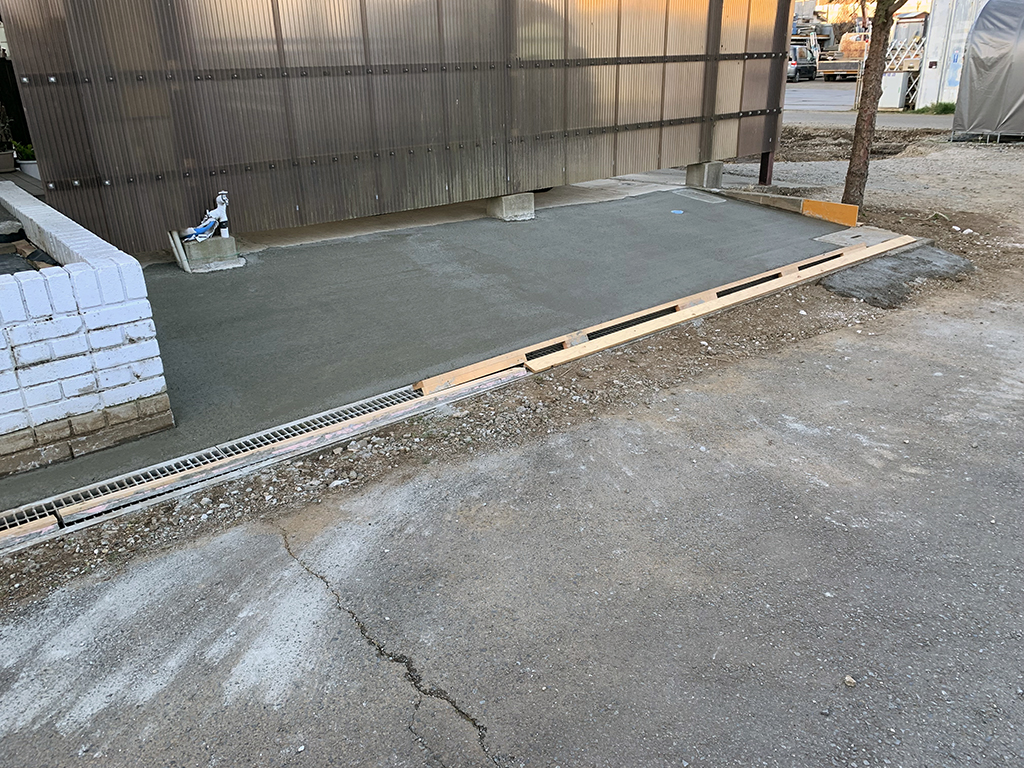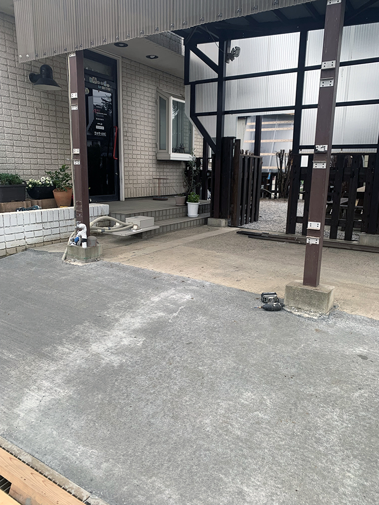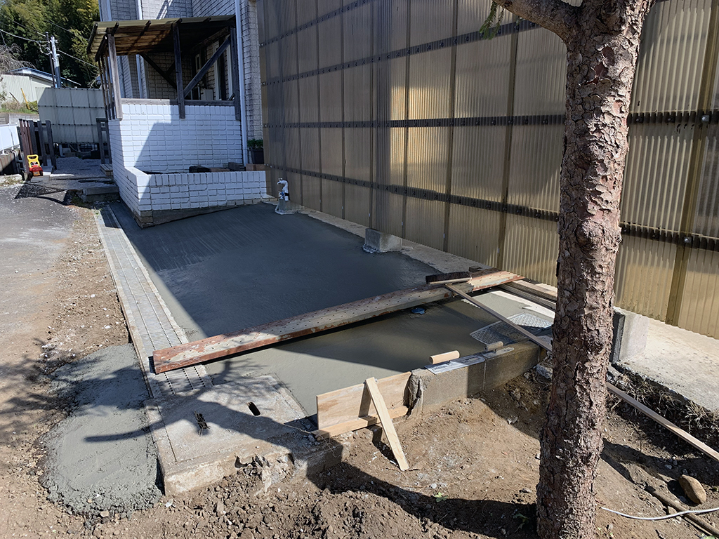 コンクリート作業が終わったので、駐車場の改造に入ります。