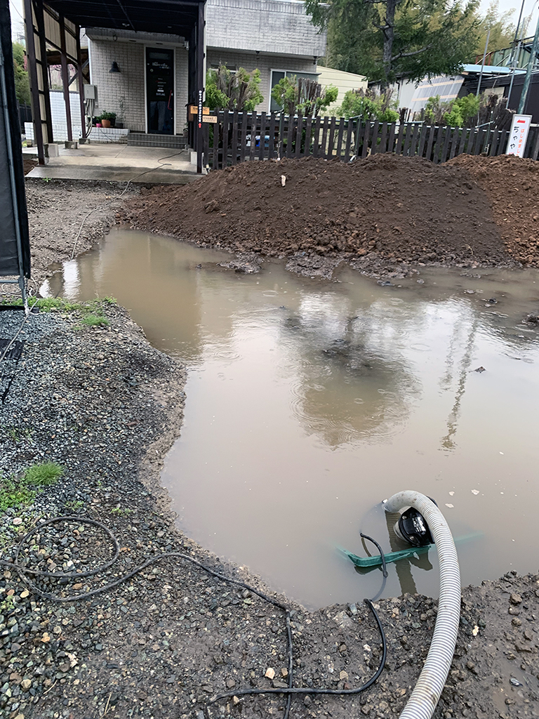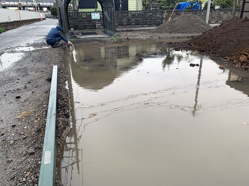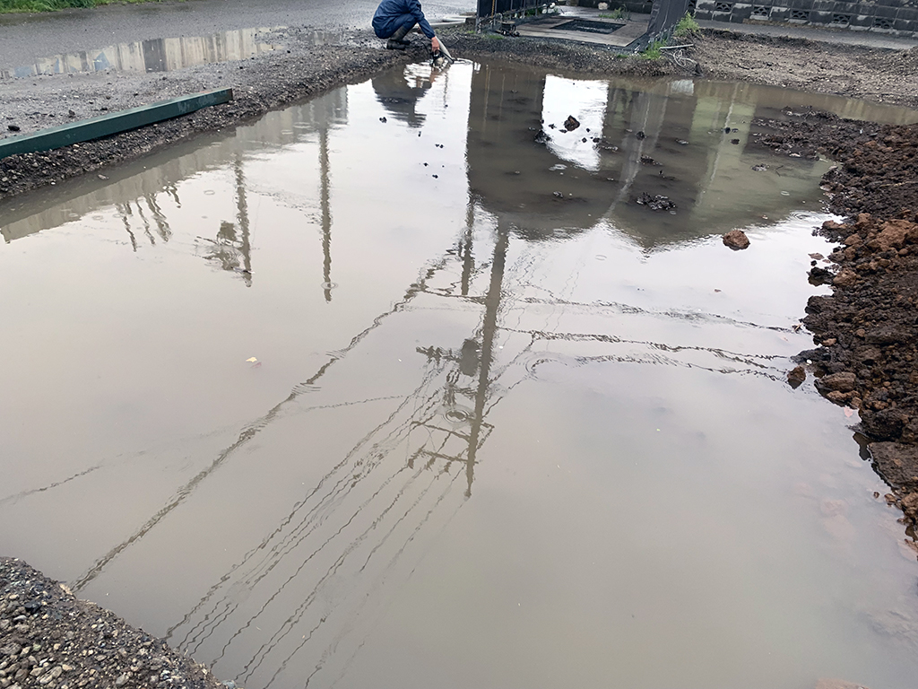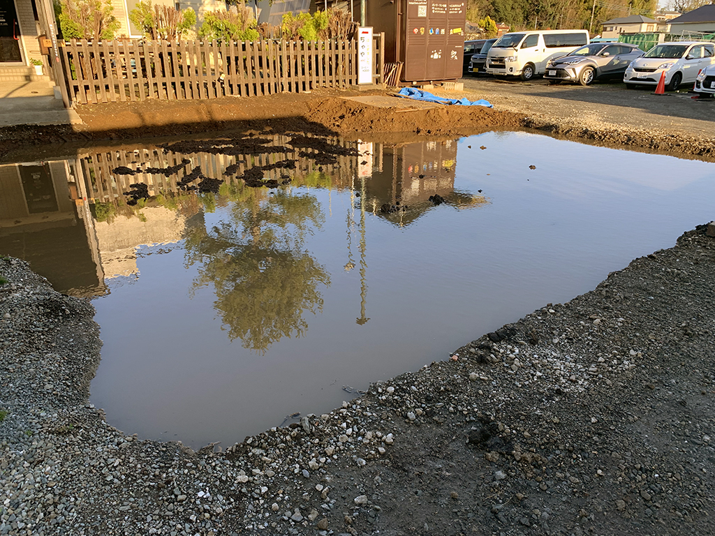 このような事を何回もやっています。今後何回やるのか非常に腹正しい思いです。もともと田んぼだったところを父が畑にしたところを駐車場にした様なので水はけが悪く、そもそも低地なので水が浸透しないみたいです。