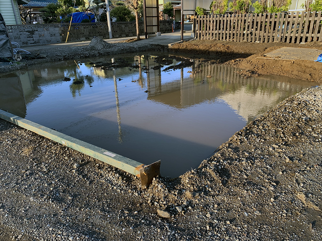池状態と言うよりプールかなって感じです。この状態がいつまで続くのか??。予算があれば一気に進むのに!!