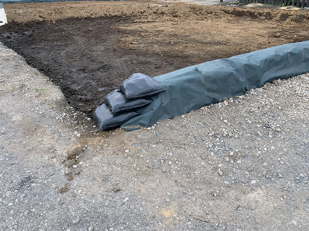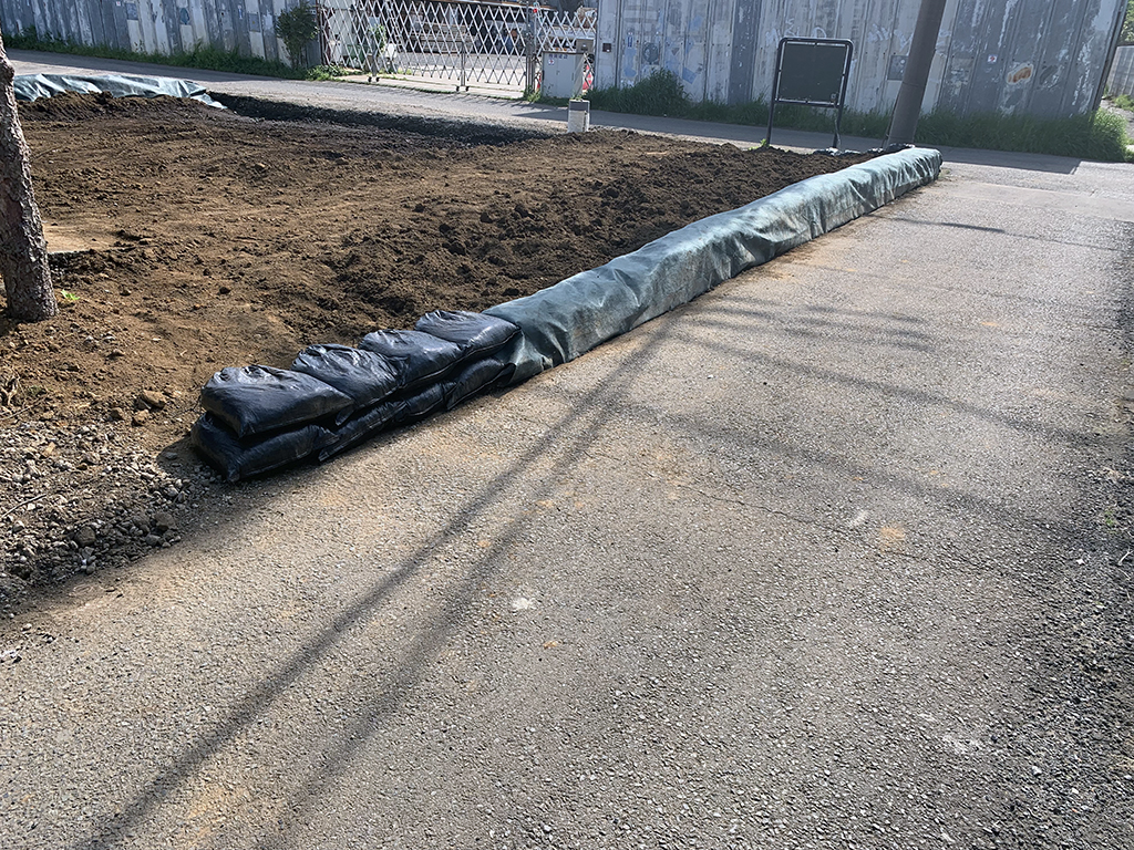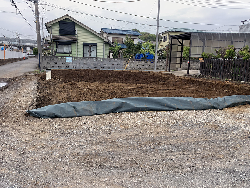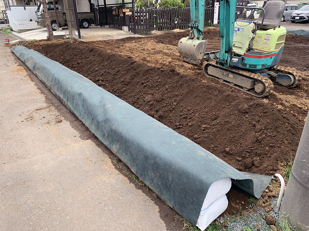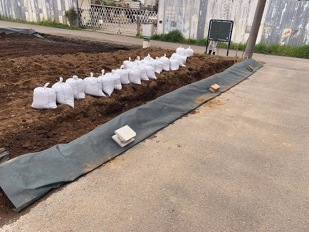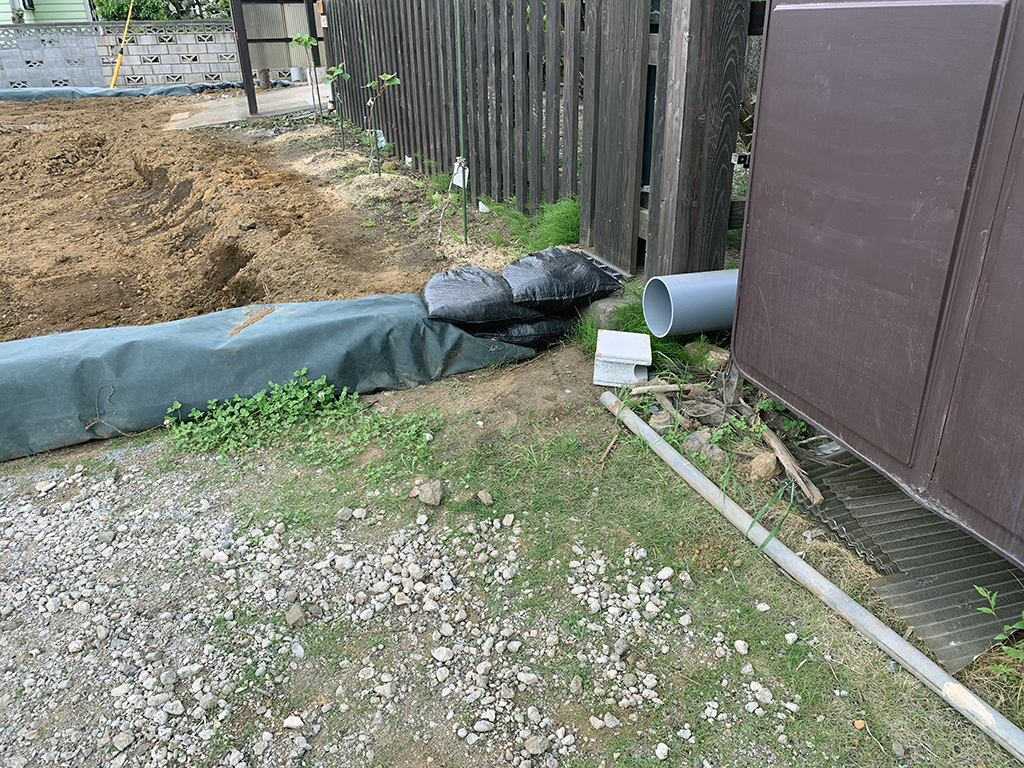 駐車場がだいぶ農地の様になってきました。水はけが悪いので暗渠っぽいものも作りました。