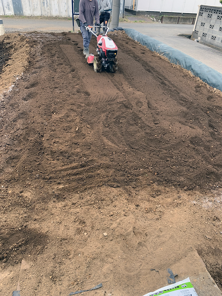 土嚢を積んで境を綺麗に整えて整地しました。最後に肥料を入れて耕運機で耕しました。これで駐車場の農地化作業はいったん終了だと思います。予算の関係で土が入れられなく不足してしまいました。でも、農地っぽくなったでしょ。今年は、スイカをここで作る予定になっています。農地化後編が開始したら怒りを込めてここに載せていきたいと思います。