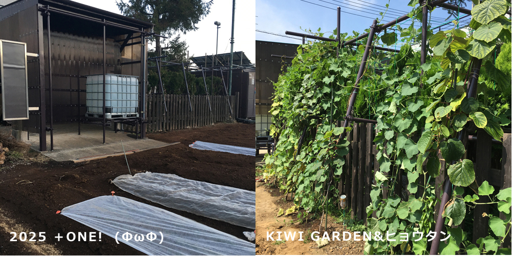 2025年 事務所の表も畑スタート&暑さ対策でキウイを作り始めたニャ (ΦωΦ)