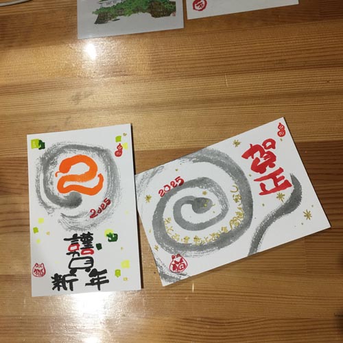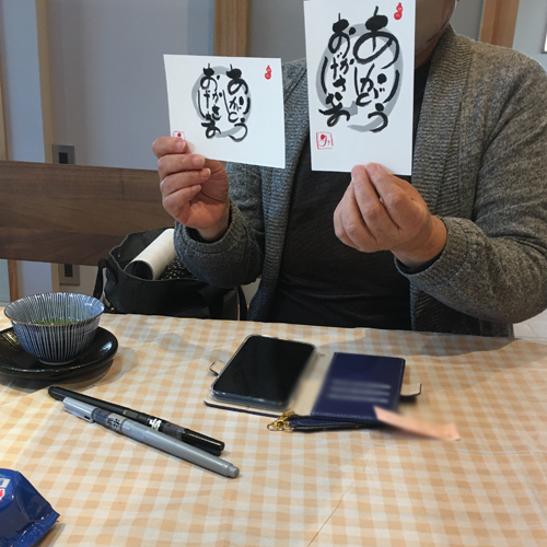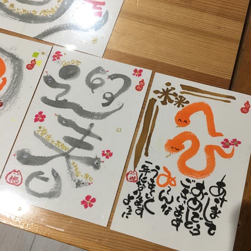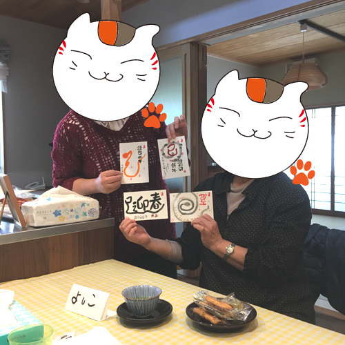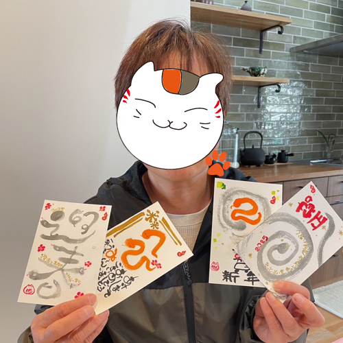 先日、2回目の吉祥さん主催のワークショップに参加してきましたよ。今回は年賀状の作成をおこなうというので凄く凄く楽しみでして。テーブルには、カラフルな筆ペンの数々が並べられ、絵の具のパレットも用意されてまして、スタート前から「ググッ」と心わしづかみされましたニャ(ΦωΦ) 実際、下手なりに味のある作品が出来て楽しかったですよ。初回の方も2度目の方も一緒に、自分のペースでチャレンジ出来るのがとても良いのです。また参加して来るニャ(ΦωΦ)