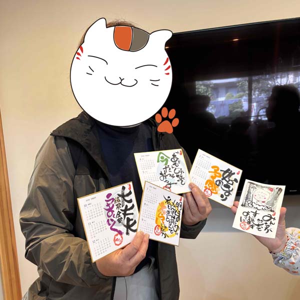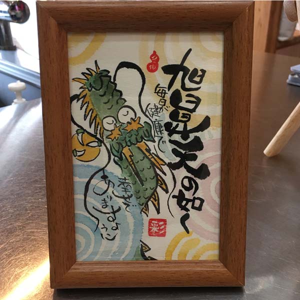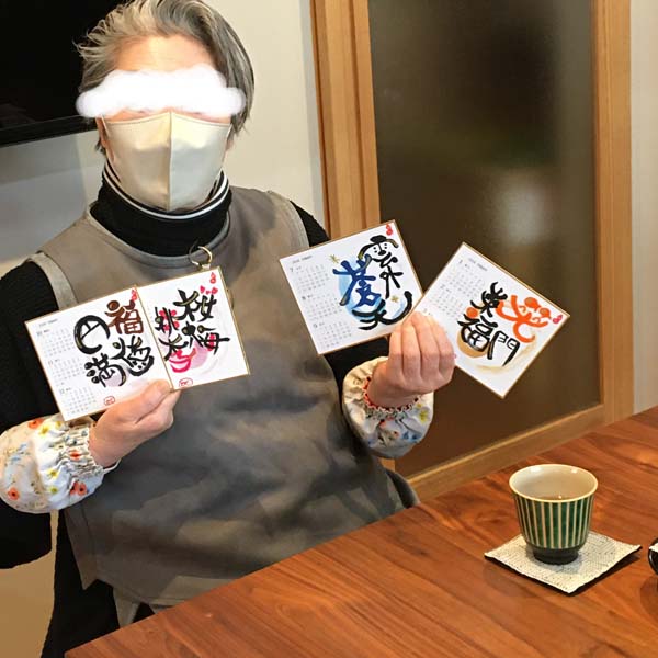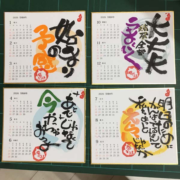 お茶屋の吉祥 自宅キッチンにて月に一度の「ご恩だ己書道場」通いだして1年経過、2回目のカレンダー作り、参加人数も都度増えて益々賑やかな会に。今回も結構チャリンなお題(難しいって事)でもね、楽しかったニャ。あやっち先生の書いた昇り竜かっこイイネでしょ。 こんなの書けるようになりたいニャ=(ΦωΦ) 猫だるまのカレンダーはダイナミック!?雑!?(笑)がんばるぞ=