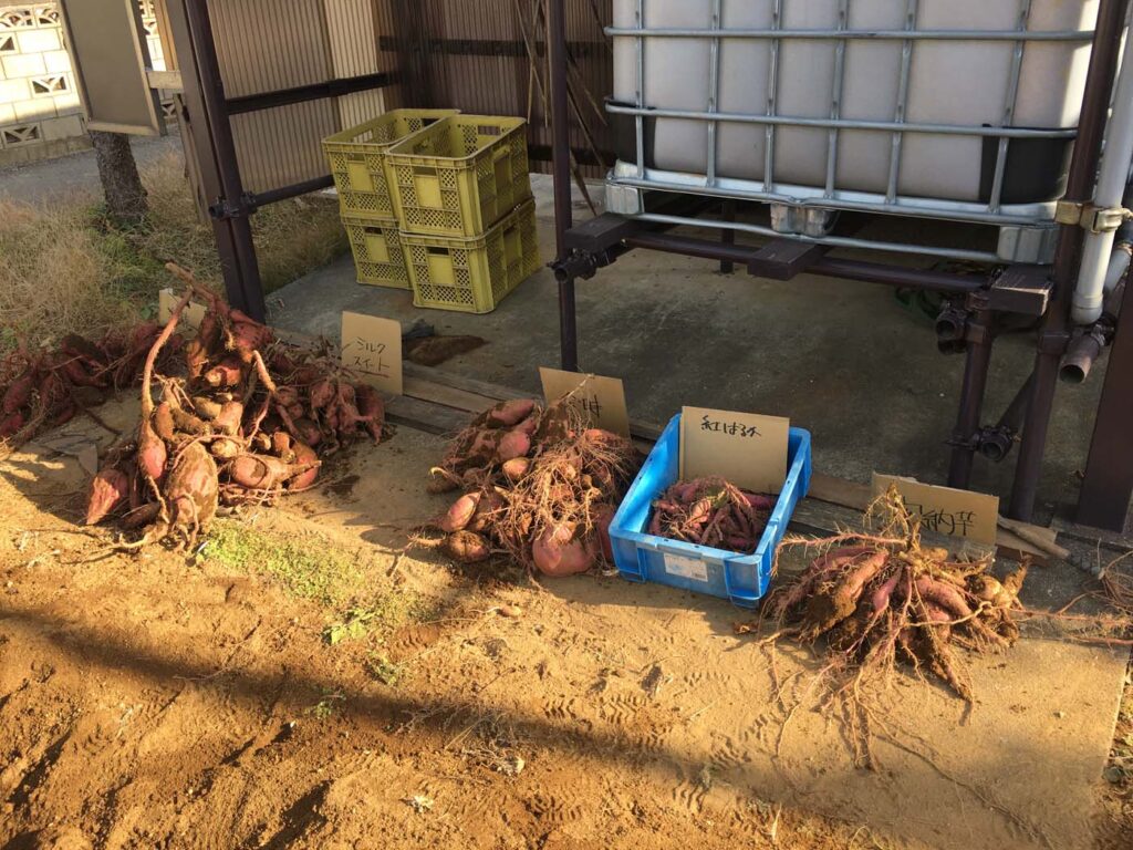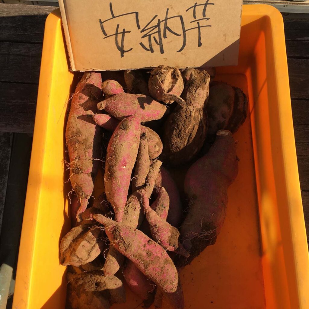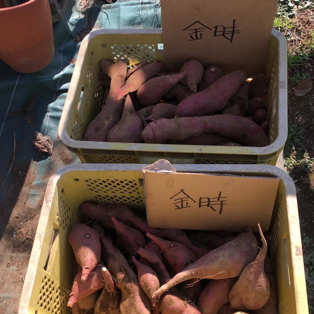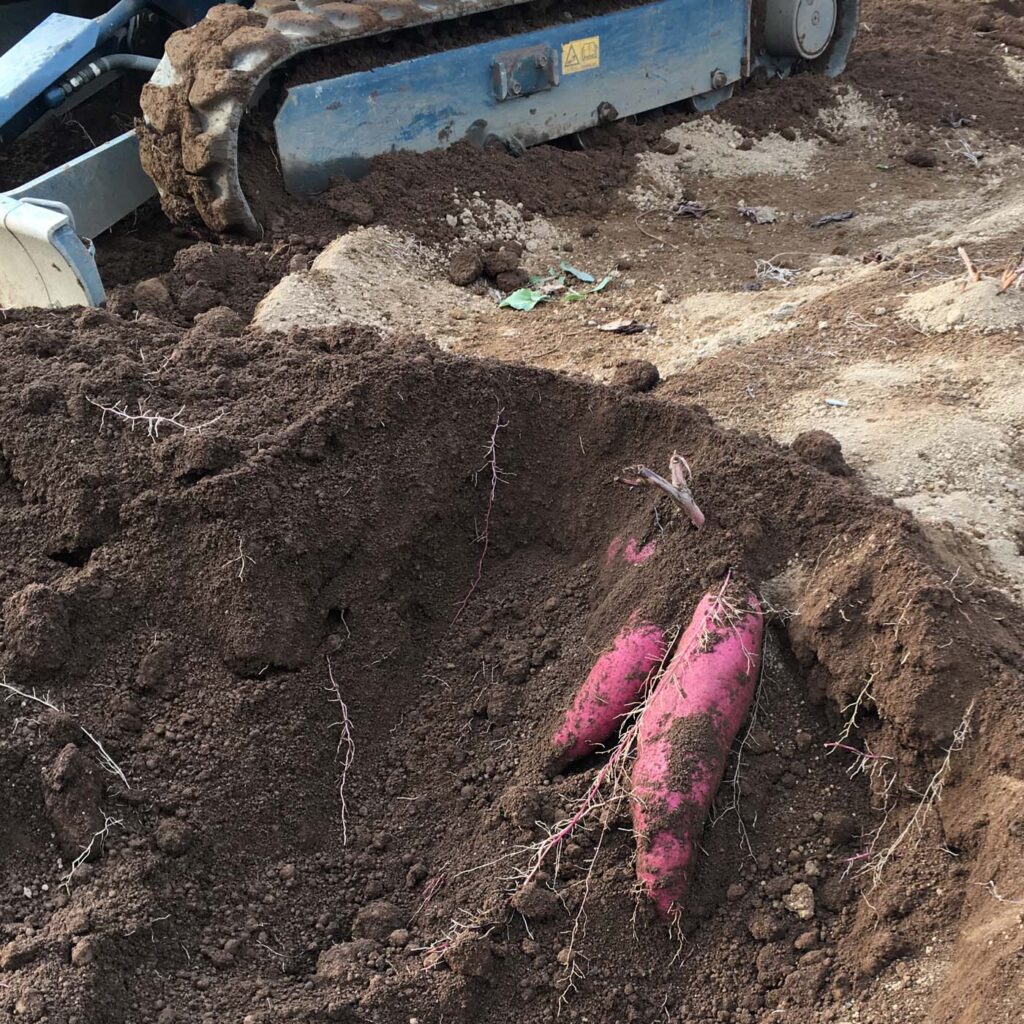 ぽかぽか天気だった11日 一気に芋掘りを片付けました。ユンボが大活躍でした。人力だけでは1日でとても終わりません。ユンボ様のおかげで、午前中でサツマイモのお片付けを終了することができました。金時とシルクスイートが今年はまずまずの量を収穫出来ました。日当たりの良いところはお化けのように大きく育っている物もある一方、安納芋は小さい芋が少しだけで。紅はるか は、8月頃に苗を試したので、やっぱり小さい物しか採れなかった。