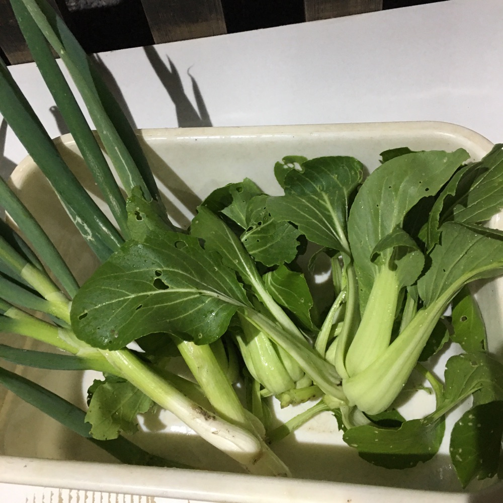 自宅の畑から採りたてのネギと、青梗菜使って作ったよ。手作りの有機肥料のぼかしで作る野菜だし、美味しいに決まってる(°▽°)