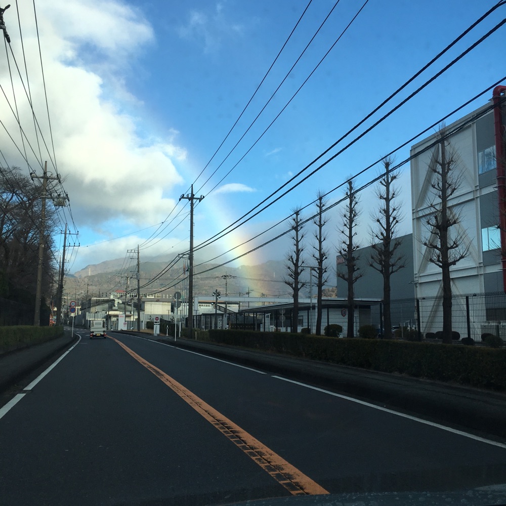 早朝、現場に向かう途中に大きな虹の橋を発見!