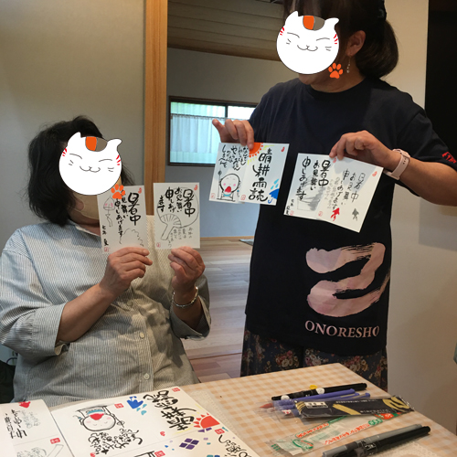 夏にぴったりのお題をいただき、楽しかった~~~。サプライズであやっち師範にバースデイ己書をプレゼントして頂きました!